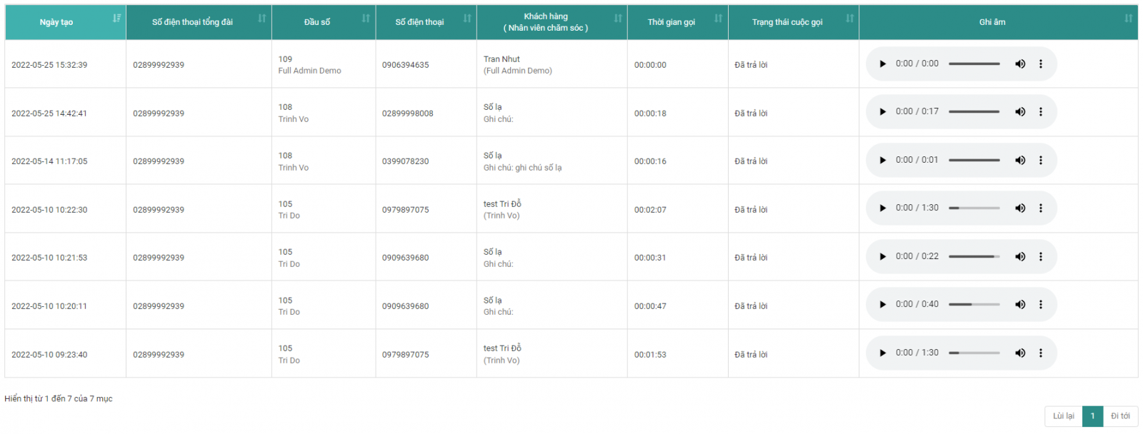 • Có thể kiểm tra và nghe lại tất cả nội dung cuộc trò chuyện của nhân viên và khách hàng. Kiểm soát nội dung và chất lượng cuộc gọi đến / gọi đi chính nhân viên của bạn. Điều này giúp nhân viên của bạn cẩn trọng hơn trong việc giao tiếp với khách hàng
