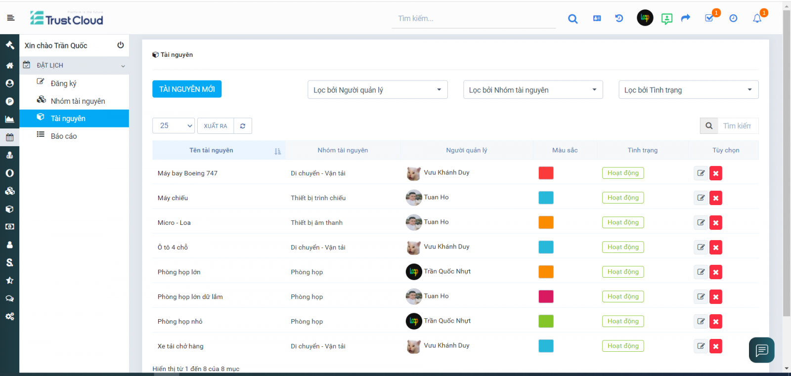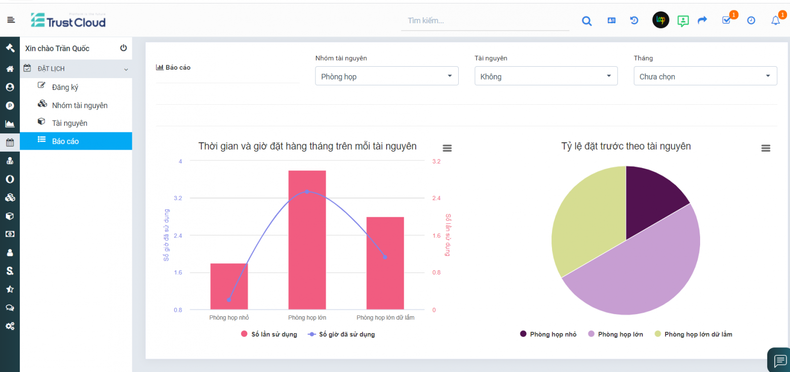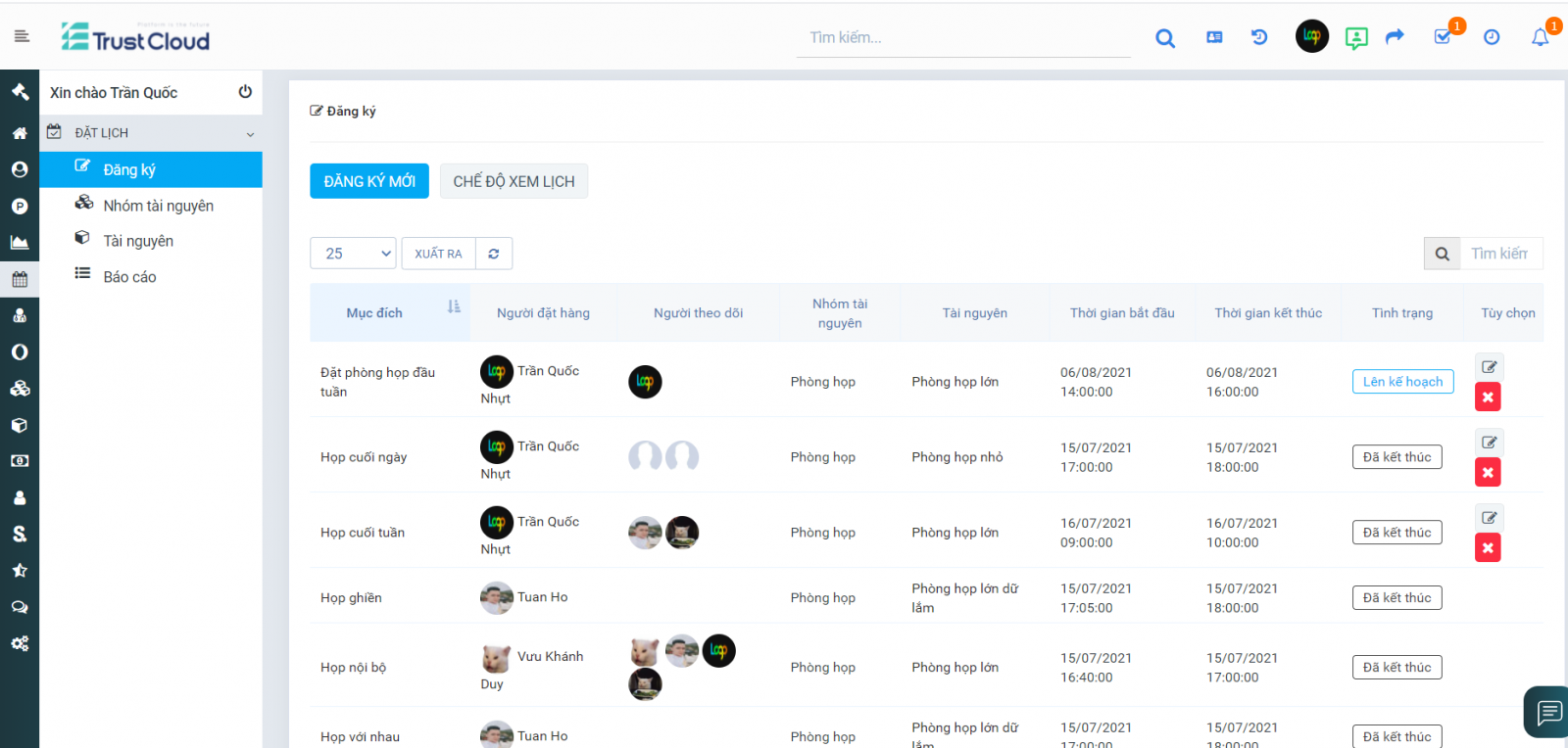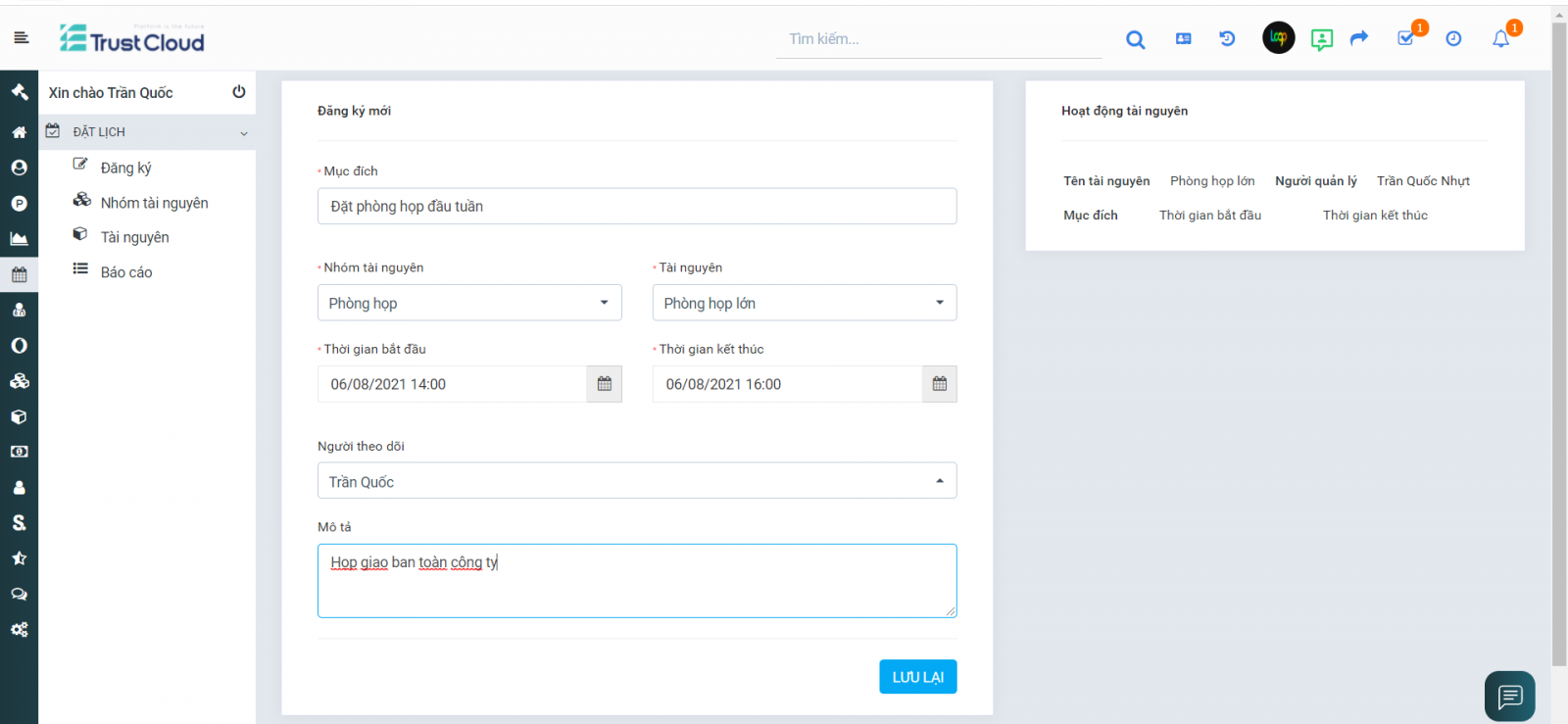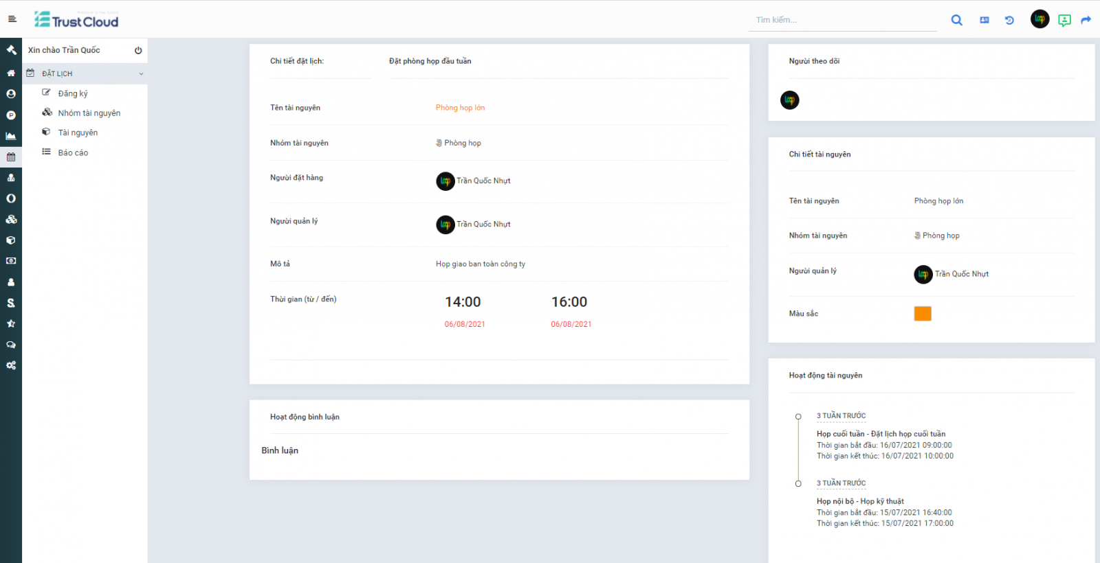 Lịch sử dụng tài nguyên rõ ràng, minh bạch để mọi người sắp xếp đặt lịch.