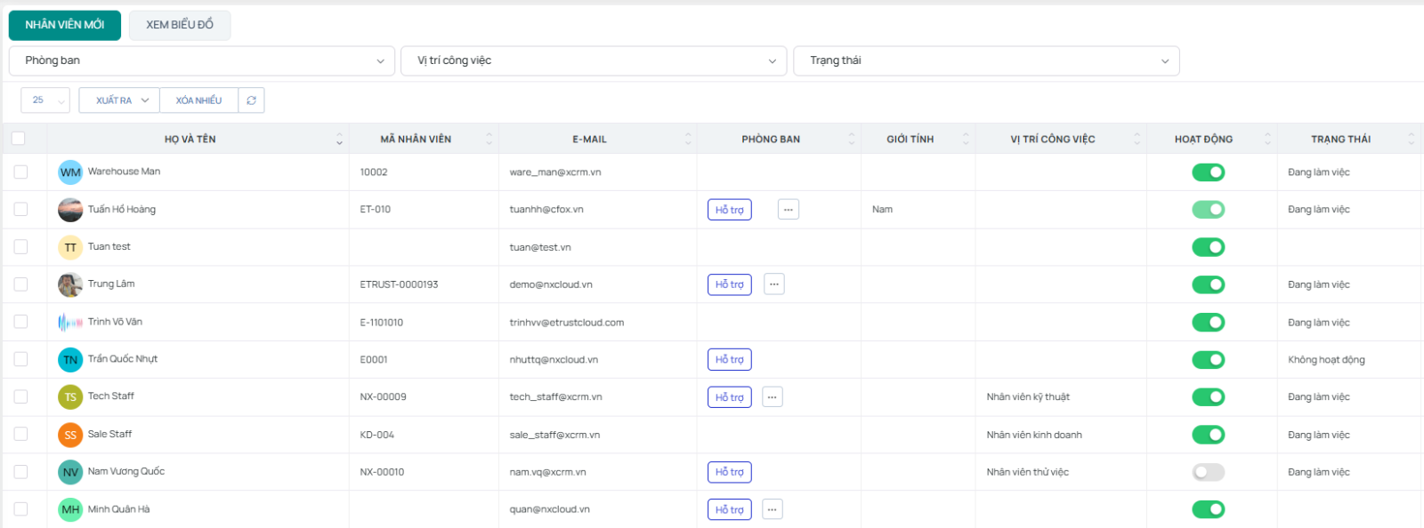 Quản lý cơ sở dữ liệu nhân sự.