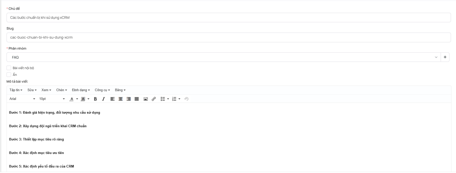 Cho phép nhân viên tạo bài viết và chỉnh sửa từng bài viết theo yêu cầu.