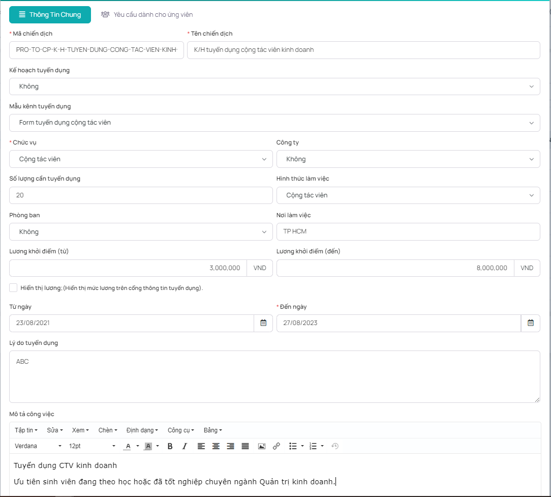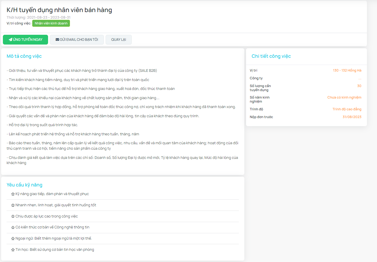 • Cổng thông tin tuyển dụng trực tiếp để ứng viên có thể vào để tìm kiếm vị trí công việc phù hợp.