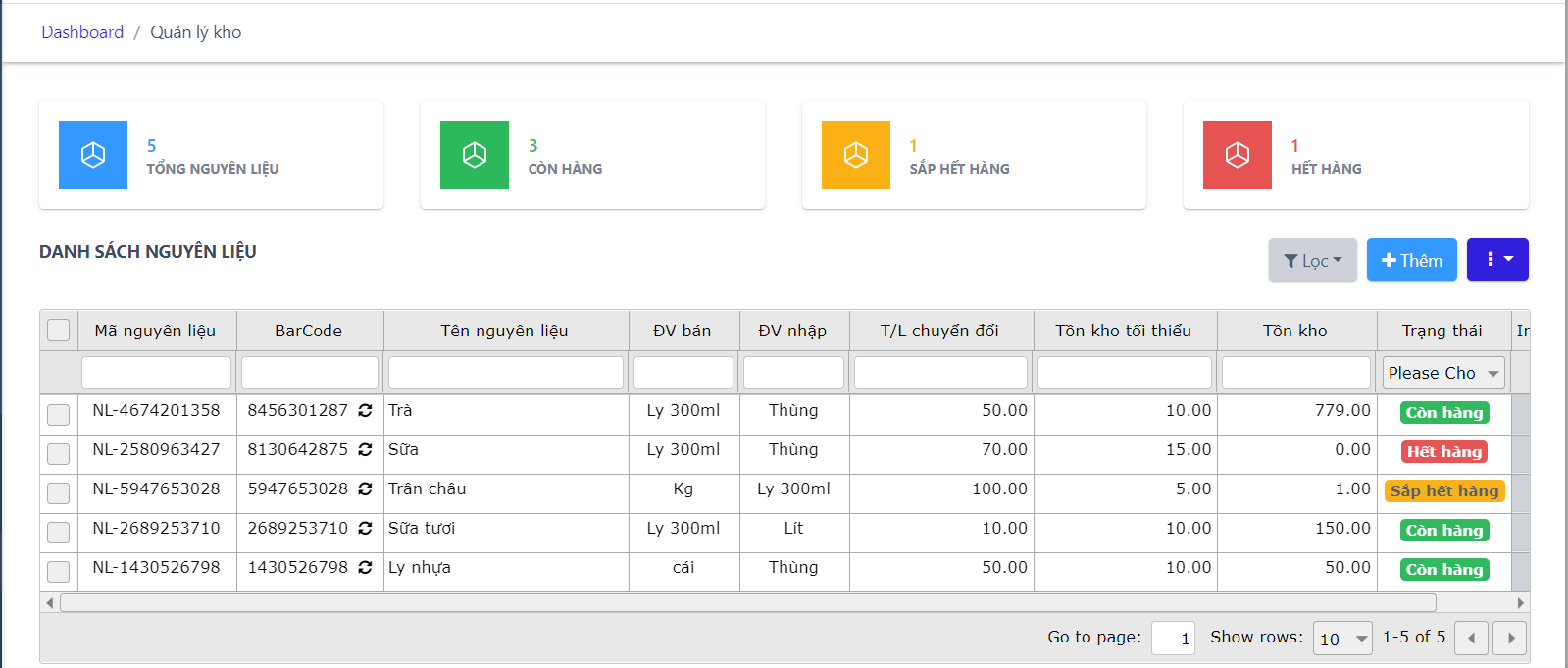 Hỗ trợ quản lý nguyên liệu chế biến