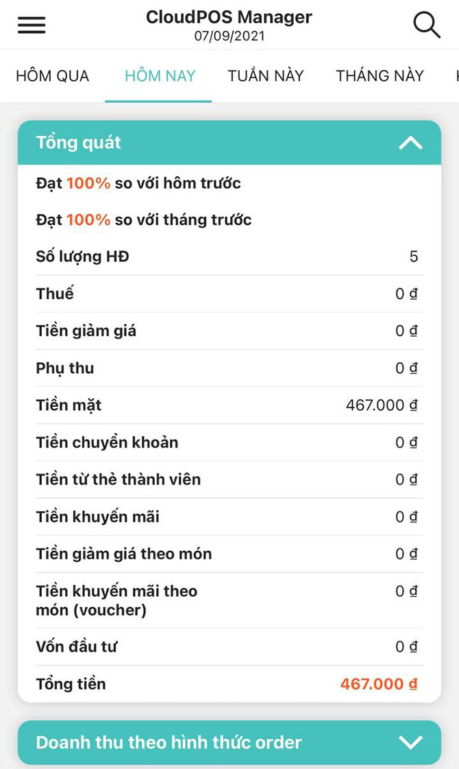 Theo dõi doanh thu thông qua App CloudPOS Manager