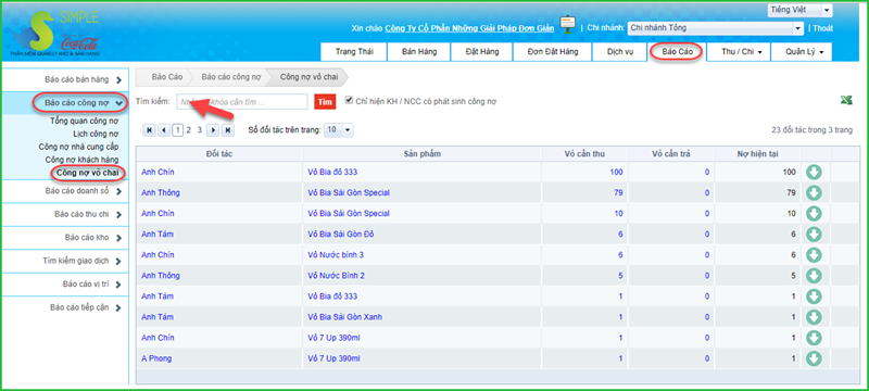 Công nợ theo vỏ chai