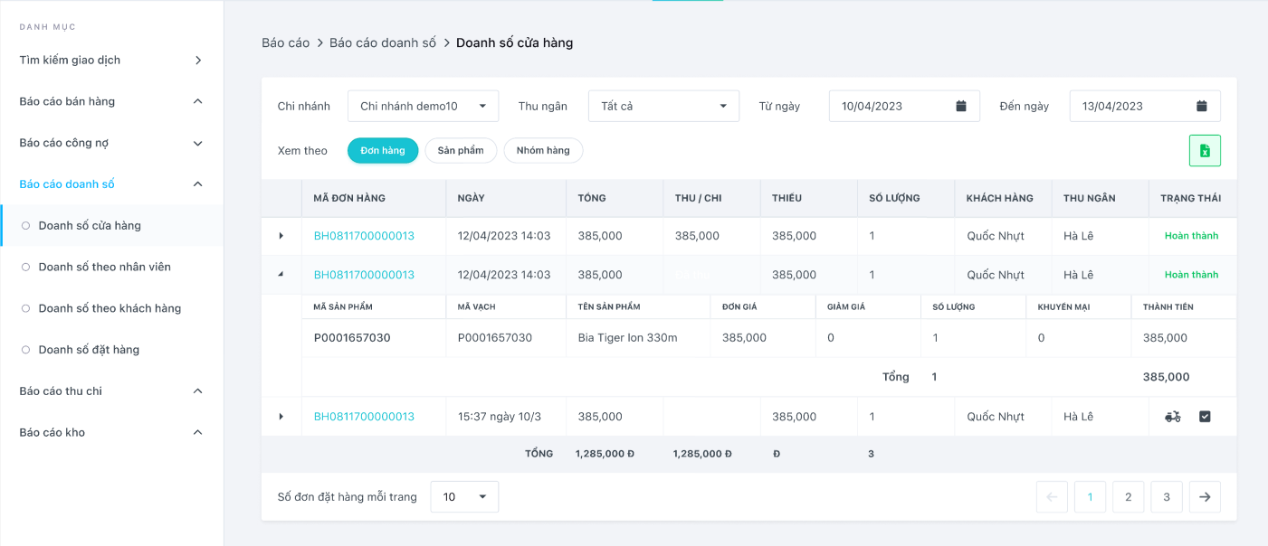 - Tổng kết đơn bán, đơn đặt hàng trong ngày
