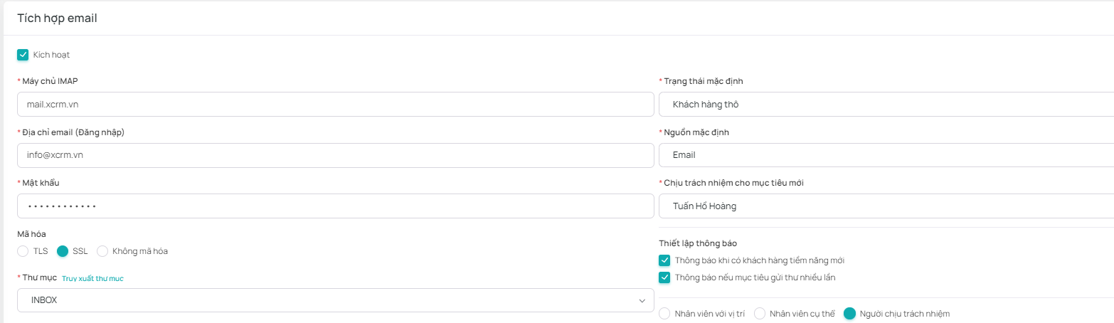 - Chỉ cần tích hợp địa chỉ email vào hệ thống, tất cả email gửi đến địa chỉ này sẽ được thu thập và tạo thành khách hàng tiềm năng trên xCRM