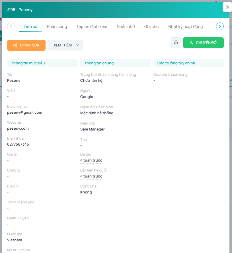 - Khi khách hàng tiềm năng đã vào quy trình bán hàng dễ dàng chuyển đổi khách hàng tiềm năng thành khách hàng trên hệ thống.