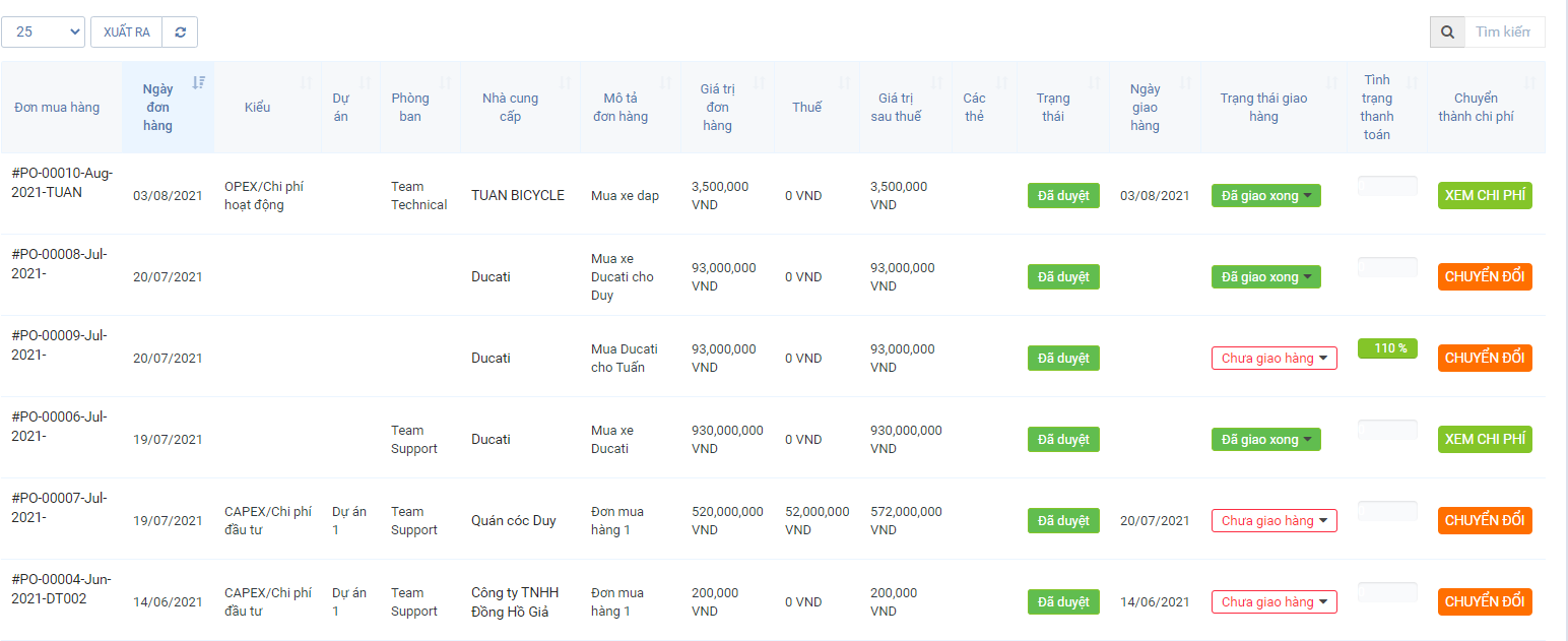 Tạo yêu cầu mua hàng và đơn mua hàng.