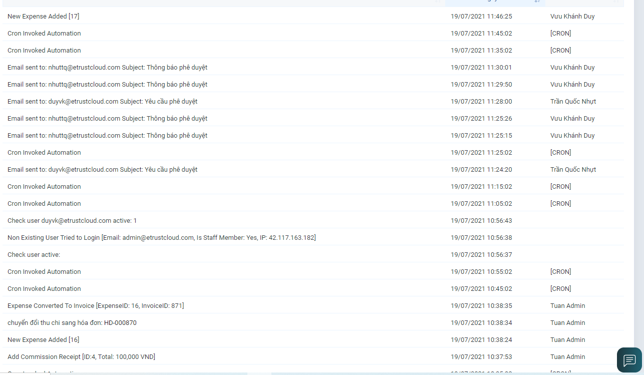 - Hiển thị lịch sử thao tác của các nhân viên có trong hệ thống.