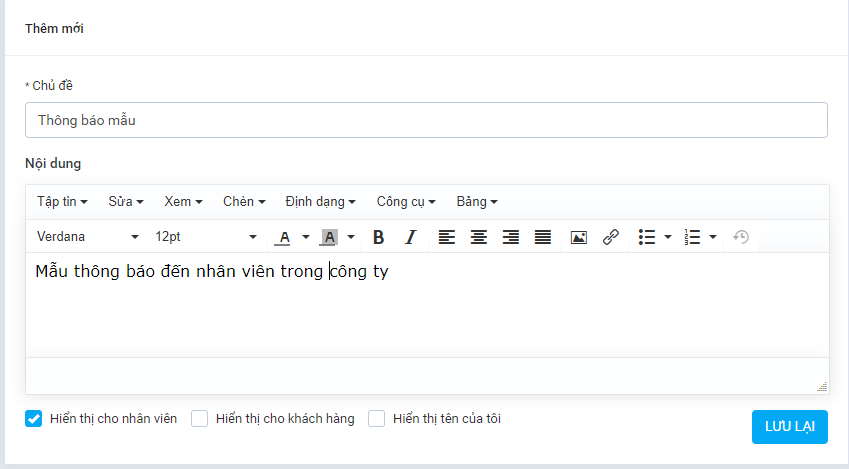 - Tạo thông báo gửi đến toàn bộ nhân viên.